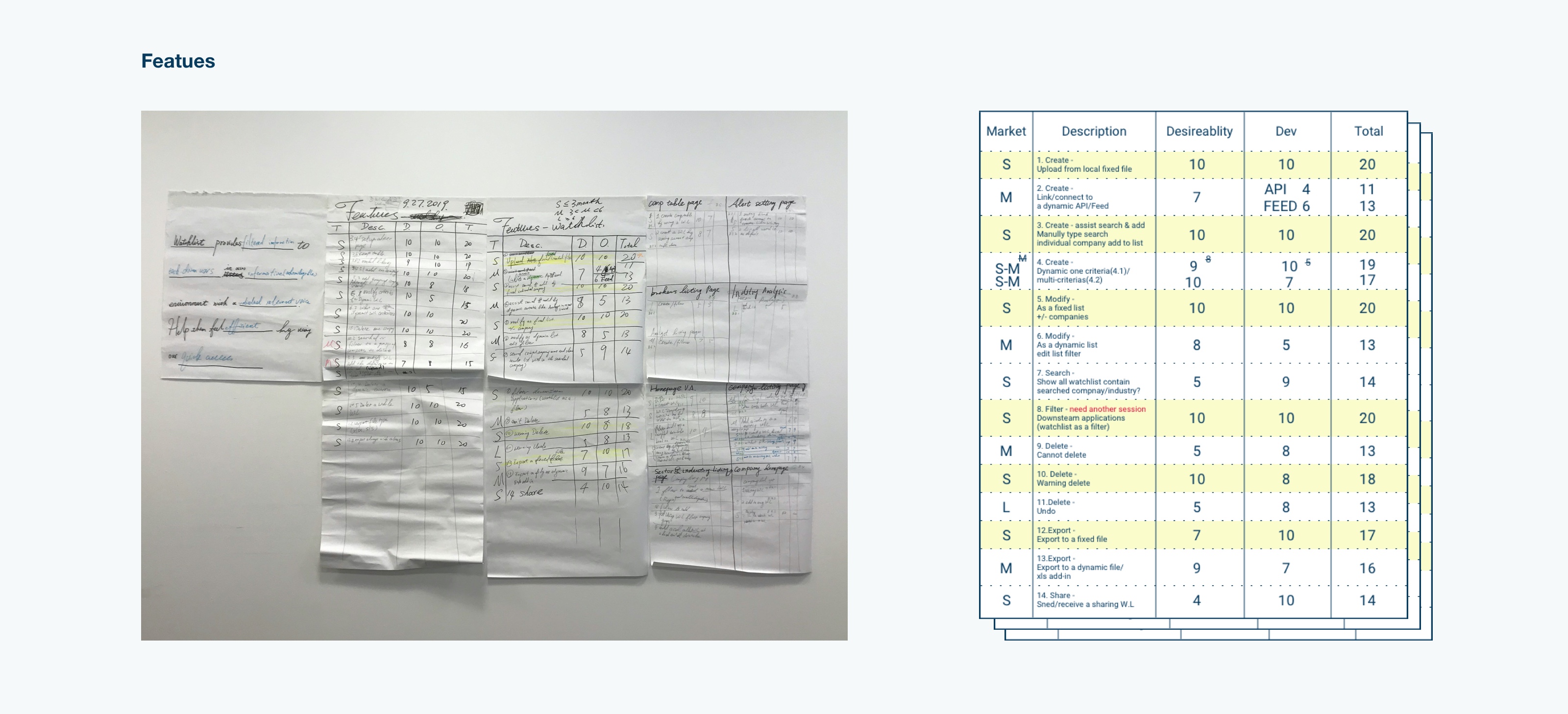In the second step, I invited the product, marketing, and development team members to have a workshop focusing on picture users' portraits and prioritized all features related to the watchlist.