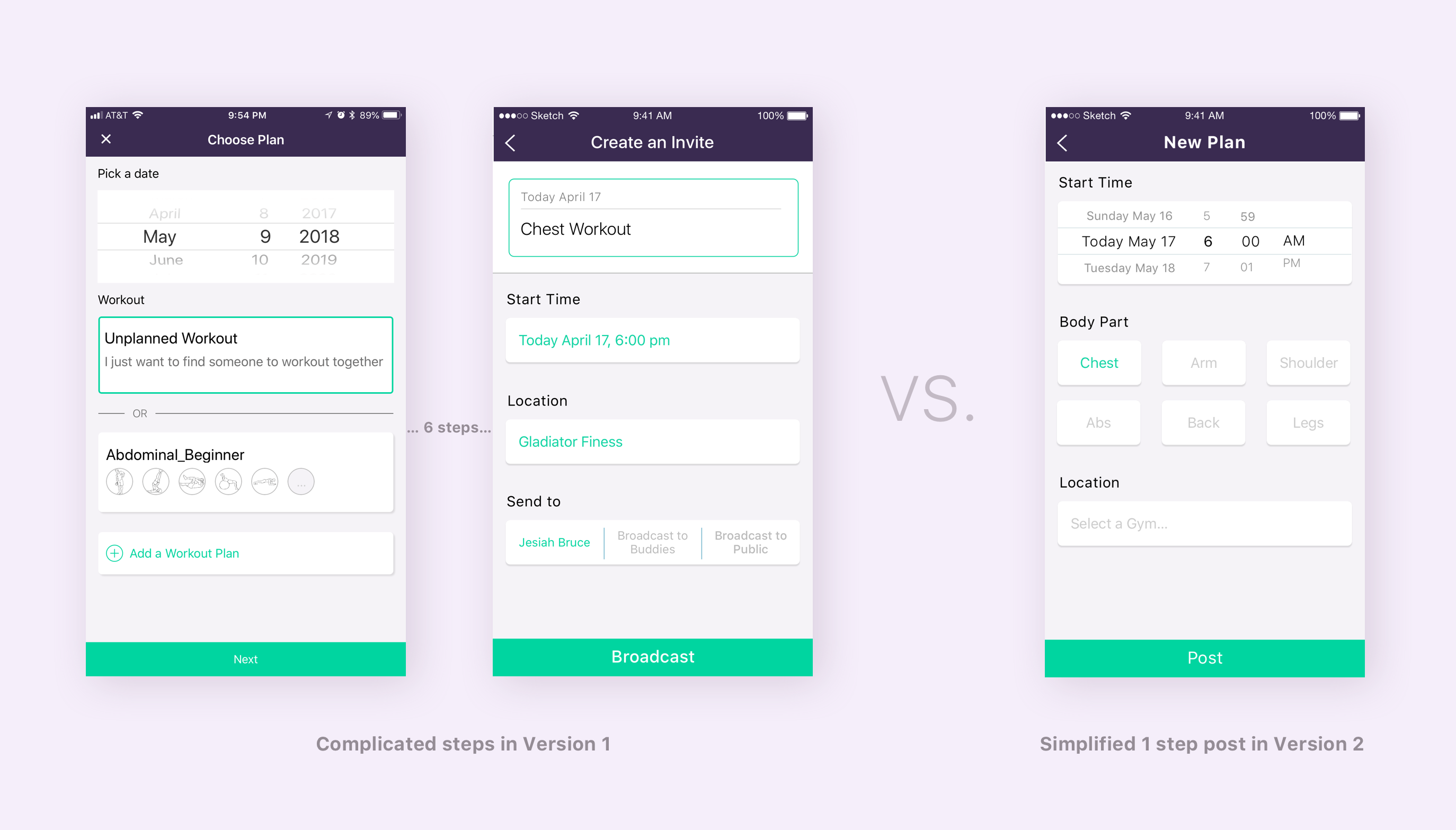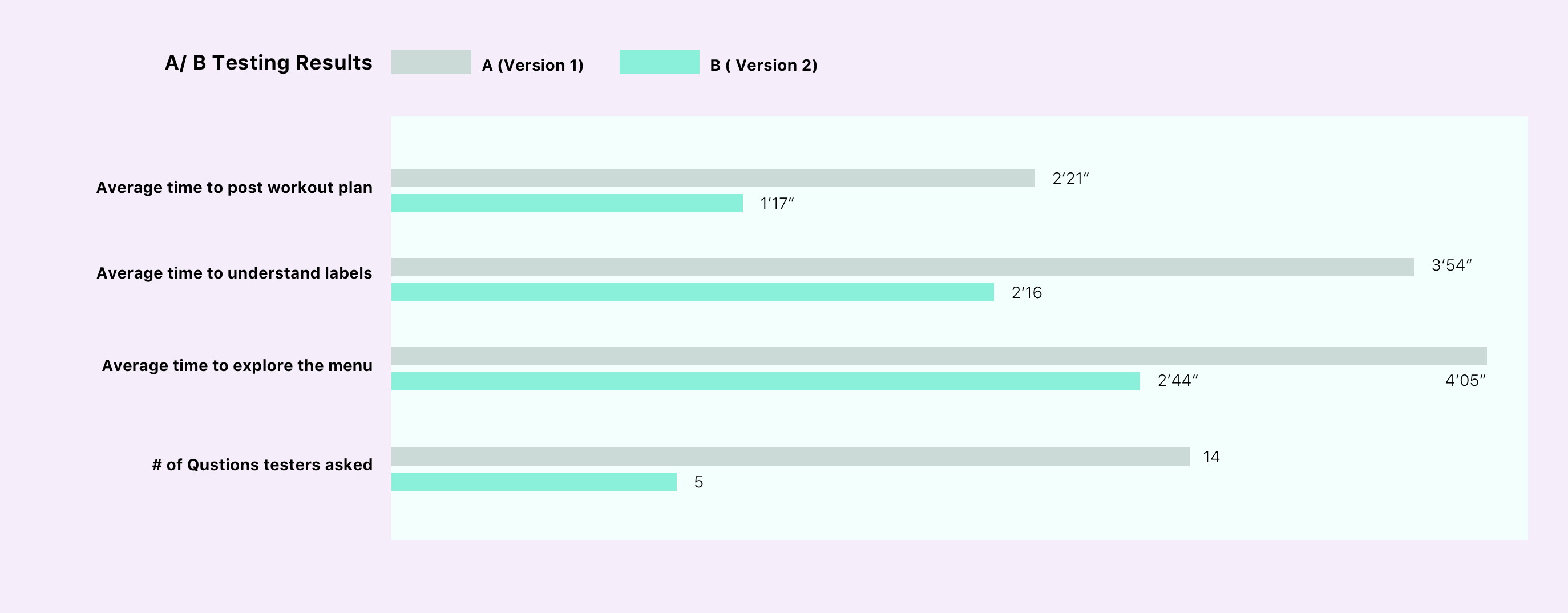 The result shows markable improvement in efficiency of posting and joining a workout, as well as a reduction in users' confusion.
