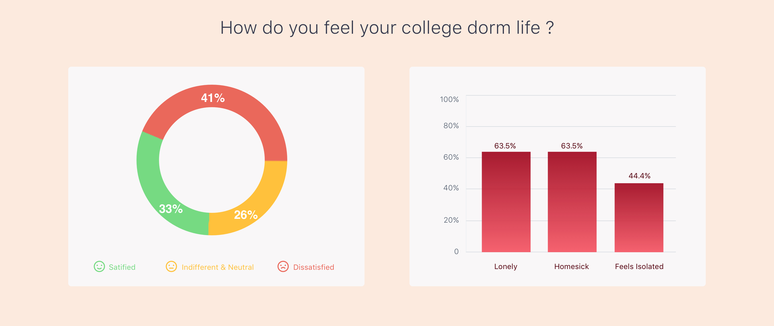 Furthermore, 63.5% of undergraduates feel lonely or homesick frequently or occasionally, and even worse is, 44.4% of undergraduates think they are isolated from campus life. All these data caught the project team's attention; we decided to figure out the cause for this.