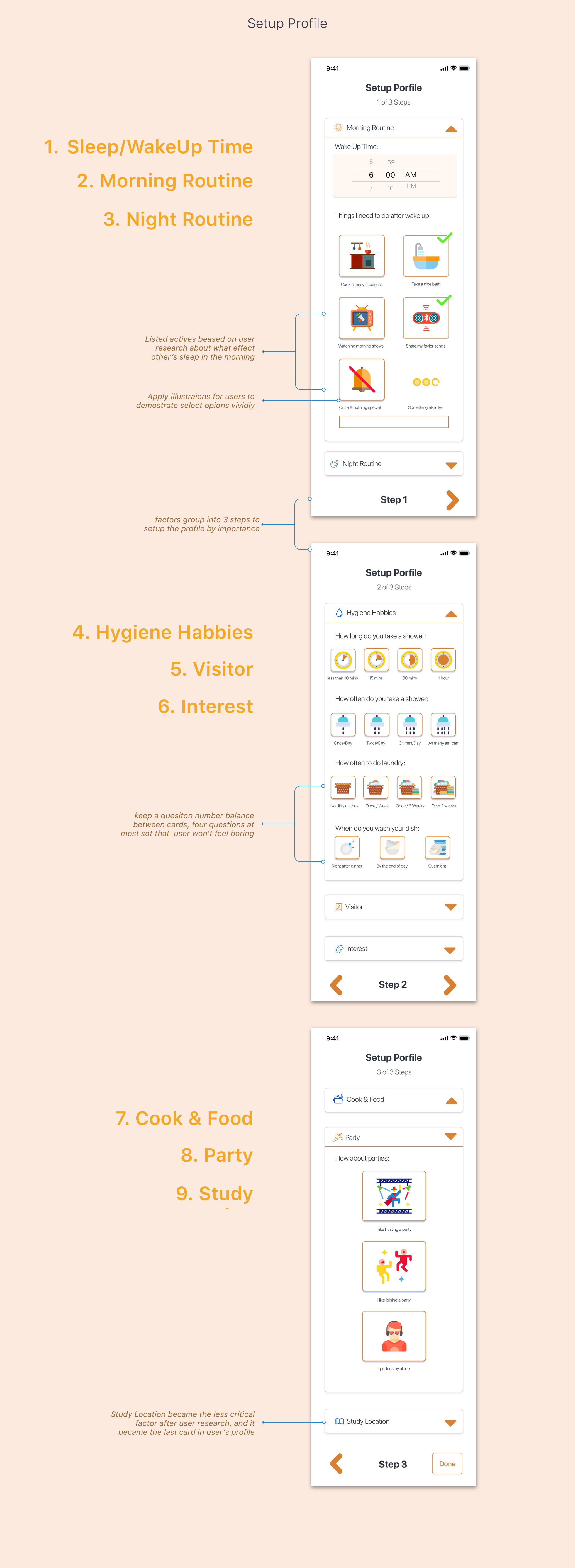 Technically, the team has decided to use swipe-cards design method for matching in stead of the traditional scrolling down the list method. The team's aim to help the students stay more focused on each of the individual candidates rather than review many candidates simulataneously like window shopping. Moreover, the application will incorporation preference filter, which will increase the efficiency of finding roommates when they share some common favorite music, movie or books. In addition, the dominating color of this application will be set golden-gate-bridge orange, expected to enable students feel warmth and family.